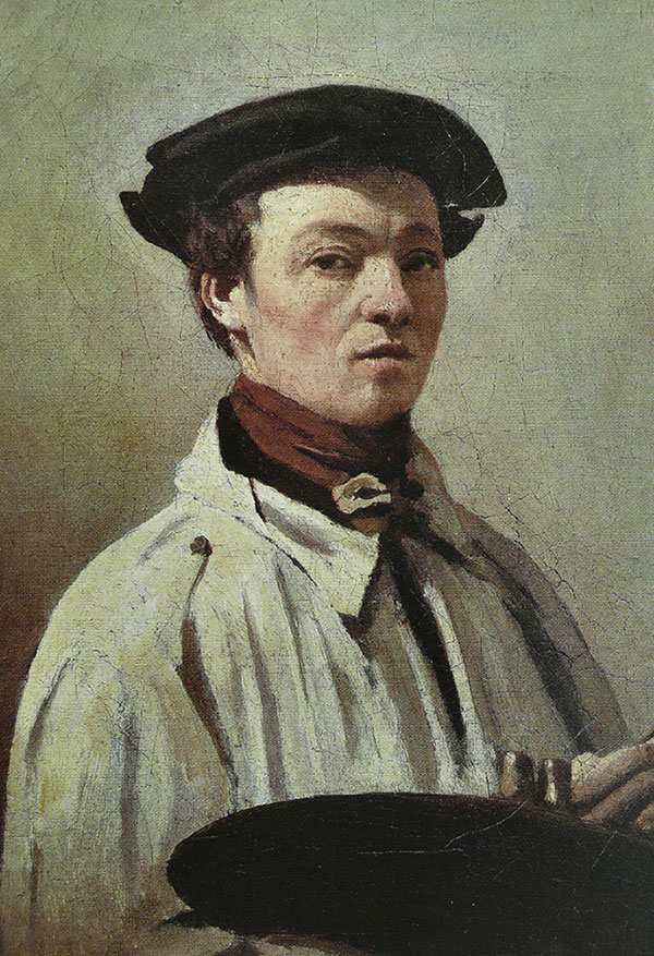 《拿调色板的自画像》油画-柯-罗