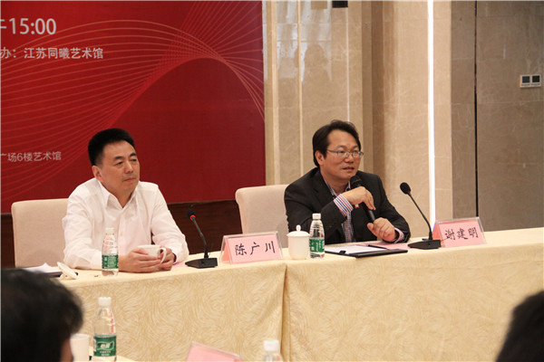谢建明院长、陈广川董事长先后为授牌仪式致辞并共同揭牌,最后由谢建明院长向同曦艺术馆正式授予“南京艺术学院同曦教学实践基地”牌匾。