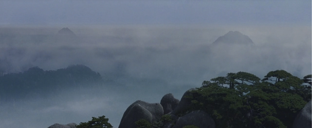 以著名华裔导演李安的《卧虎藏龙》为例来分析一下传统水墨元素视效的功用。这部影片的内容是传统中国武侠故事,其中必涉及诸多中国元素的内容,尤其以南宗恬淡闲适的山水画构成元素占据了片中视觉元素相当大比重, 采用了大量具有传统山水画水墨元素的优美镜头, 来表达寄情于山水特有的中国文人情节, 充分体现了中国传统艺术精神中“道”“气”“心”“舞”“悟”“和”六个字。李安借助于这些在中国古典水墨元素视觉效果,向世界人民展示了这样一个具有传统人文精神和深厚文化功底的中国,不但为西方观众了解中国传统文化提供了新的方式,还为中国传统文化走向世界提供了一个好的机会。