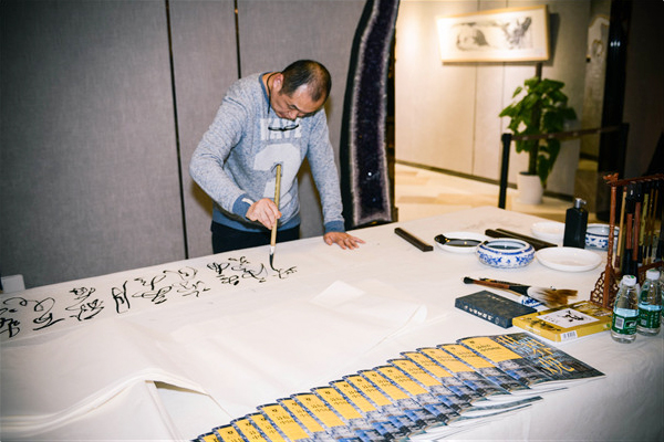 当天的专场拍卖的第二个惊喜就是同曦艺术展拍中心还为大家特别邀请到了著名艺术家、南京大学美术研究院教授、副院长、江苏省中国画学会副会长聂危谷来到现场与大家进行交流,让投资者真切感受艺术的魅力和艺术家的风采。更让大家喜出望外的是:聂危谷教授还现场即兴挥毫泼墨,创作书法作品,向现场的竞拍人赠送了自己的书法作品,为本场拍卖中的竞拍人献上了一份经典的文化大餐和视觉的盛宴。