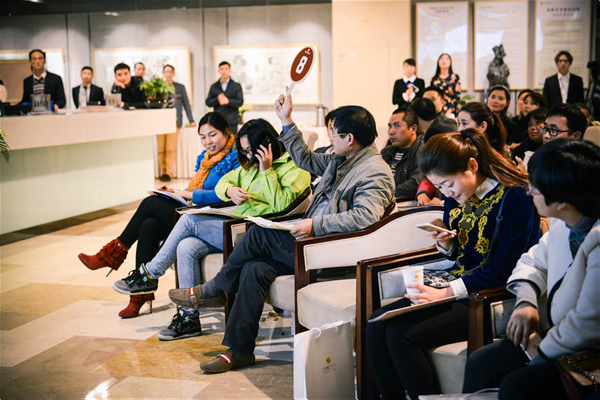 11月20日下午五点多,同曦艺术展拍中心竞拍区,一场持续了两个多小时、专门针对江宁工行VIP投资客户的艺术品拍卖会在热烈而有序的氛围中落下帷幕,竞拍现场气氛十分活跃、场面非常火爆。现场展示拍卖的都是中国当代书画作品。据统计,当天共有50多位竞拍者参与现场竞拍,80余幅艺术作品完成交易。当天拍卖的总成交价一千多万元,反映出金融投资人士对同曦艺术投资平台的极大热情和十足信心。