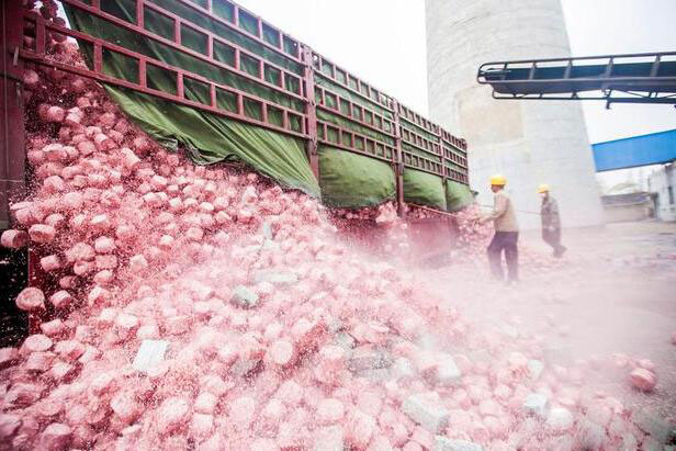 燃料专工朱洪伟告诉记者,残钞销毁后一般由专人专车运送到盐城。“一车残钞大约原值30亿元,重30吨左右,一个月运来5车,全年运来残钞约1800吨,和秸秆混合焚烧。”朱洪伟说,残钞废料到厂后卸货,再进行粉碎,这样易于燃烧。