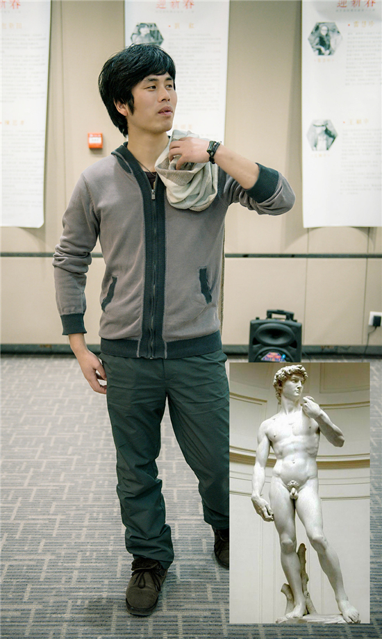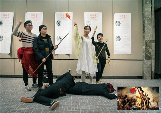 在开幕式的最后,本次活动的主办方同曦艺术馆也引入了一个前无古人的创新互动环节——摆拍世界名画。通过现场还原扮演,让在场的嘉宾等足不出户,不用前往收藏世界名画的各大知名美术馆,即可领略世界名画的魅力。通过现场嘉宾们的演绎,将《自由引导人民》、《最后的晚餐》、《泉》、《掷铁饼者》、《思想者》等一幅幅大家耳熟能详的画作乾坤大挪移以另类的表现方式展现在大家眼前。颇有“看我72变”之感。