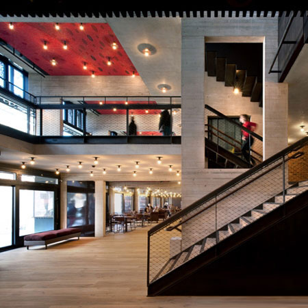 FeildenCleggBradley设计了橡木楼梯,还有HaworthTompkins的利物浦新剧院,礼堂采用了砖结构,回收利用了25000块砖,很有特色。