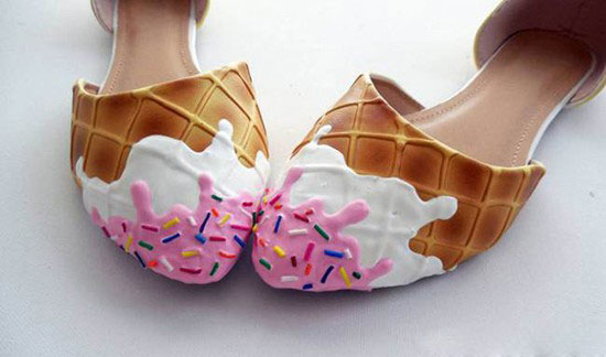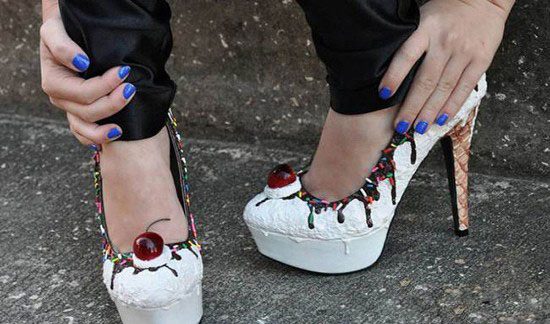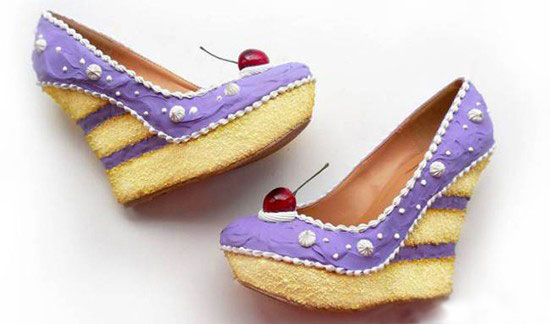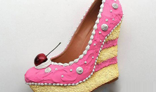 买了这种新型高跟鞋的顾客们都有一种错觉,不知道自己到底是喜欢将食物穿在脚上还是送进嘴里。当然,买上一双蛋糕高跟鞋,然后穿上它,走进蛋糕店,再吃上一块美味的蛋糕,也是一件非常幸福的事。