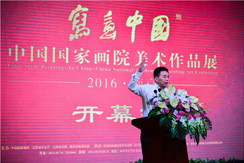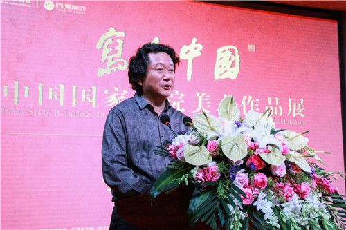 中共江苏省委宣传部副部长、江苏省文学艺术界联合会党组书记、主席章剑华,中国国家画院副院长张江舟,江苏省文化厅巡视员、江苏省艺术基金会副理事长、中国美协中国画艺委会副主任高云,中国文化传媒集团副总经理、艺术市场杂志社股份有限公司董事长代柳梅,江苏省美术家协会主席、江苏省国画院院长、江苏省美术馆馆长周京新,同曦集团董事长陈广川等领导与嘉宾先后上台讲话。发言领导与嘉宾从各自角度出发,畅谈了自己对“写意中国”,以及中国当代美术发展的理解,并高度赞扬了本次展览对于中国当代美术发展所具有的重大引导作用。同曦集团董事长陈广川更是在现场与大家分享了同曦集团产业发展的宏伟蓝图。