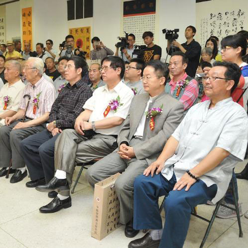 人民日报社原社长邵华泽,原国防大学校长裴怀亮,中央纪委驻司法部纪律检查组原组长岳宣义,中国文联原副主席罗扬,中国书协原副主席刘艺,中央军委办公厅原副主任曹育民,武警北京总队原副政委李金星,解放军总参通信部原副部长杨苏海,中央电视台原副总编辑赵立凡,陕西省书协名誉主席薛铸,外交部离退休干部局副局长李少青,中华诗词学会副会长晨崧,北京大学书法艺术研究所所长王岳川,《美术观察》主编李一,中国人民大学艺术学院党委书记郑晓华,中国艺术研究院中国书法院常务副院长李胜洪,国际中国书画家交流促进会副会长郭廷真、李正钢,中华慈善总会筹募部主任苏辉,中国新闻网总编辑陶光雄,中国新闻社湖北分社社长章敦华,世界艺术收藏联合会主席华奎,中国教育网络电视台书画台主任张鄂生,中国通俗文艺研究会会长楚水,著名书画家及我国社会各界知名人士章敦华、马啸、陈伟、黄锡全、李人毅、程华、穆拉德、严学章、李德哲、王建勋、朱中原、彭一超、王树延、黄俊杰、徐桂德、胡功民、石琳、刘宗彪、饶金兰、杨豪良、田耕之、黄文等近三百余人出席开幕式。国际中国书画家交流促进会秘书长张金卫主持开幕式。郭廷真、华奎、王岳川、黄文、李金泰先后致辞。
