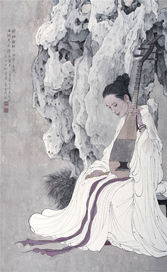 有言:大隐隐朝市,这话太适合高云,还有他的作品,无论题材是古装仕女、高人雅士、禅僧罗汉,现代女性,比如参加此次由同曦艺术馆承办的“匠心独运——2016中国工笔画名家邀请展”的作品《顾宪成像》、《转轴拨弦三两声》等;也无论画法是工笔还是小写意,多出之以细写清新的俊逸笔调,让观者仿佛可以穿越时空,成为画中人,真切地感受到来自画家笔端的那份雅淡隽永。