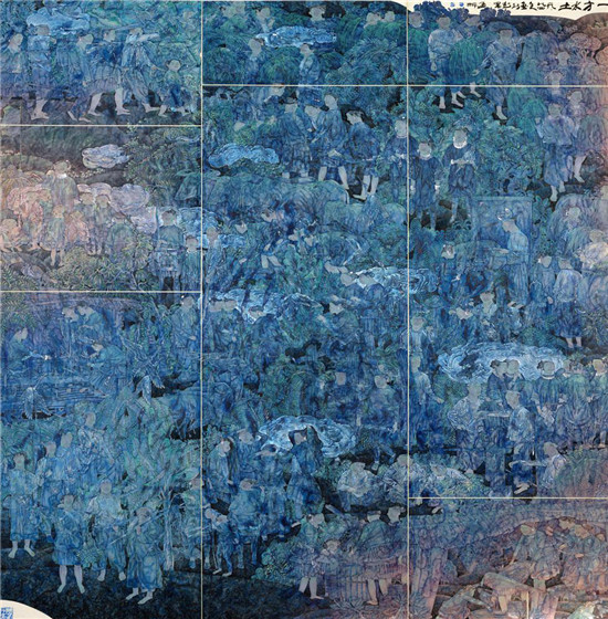 如果你很容易从众多的画里一眼看出是陈孟昕的作品,那作品肯定是他的建造大工笔范式系列作品,这和他的素染浅绛的意象小品共同构成了陈孟昕尽得风流的人物画特色。拿其参与本次“匠心独运——2016名家邀请展”的作品《雪域祥云》为例,在设色上,作品不再是单线平涂,也不是五颜六色的堆砌,而是彻底脱离媚俗,脱离匠气,色彩高贵而不艳丽,惊彩绝艳而有韵味,让画面单纯高雅,清淡出奇,呈现工笔人物画与环境和谐的新风貌。