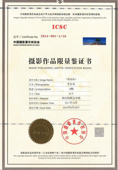 据悉,将要展出的限量鉴证版摄影作品,每一幅都配有唯一编号的现代科技防伪证书并制有钢印,每版(张)限量制作10-20幅,备有数字档案,使人们清晰地掌握摄影作品在市场上的总量,增加买家或收藏家的投资信心,提升限量摄影作品的公信力。