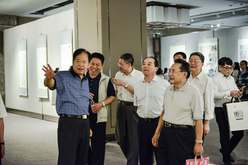 与会领导同艺术家代表亲切交流并参观了展览。书画展现场,更有许多慕名而来的艺术爱好者在书画作品前驻足欣赏,不时与友人交口称赞或拍照留念,反响十分热烈。