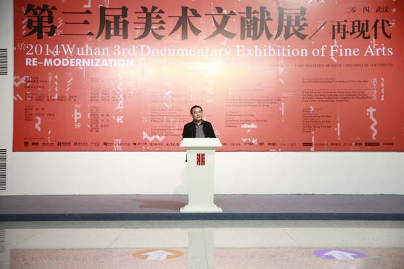 由湖北美术馆和美术文献艺术中心联合主办,湖北美术出版社协办的“2014武汉第三届美术文献展”于9月13日晚在湖北美术馆举行了盛大的开幕仪式。本届美术文献展由湖北美术馆馆长傅中望和美术文献艺术中心总监刘明担任艺术总监,展览共分四个板块,包括湖北美术馆副馆长冀少峰策划的“再现代”部分,《美术文献》执行主编付晓东策划的“刻奇博物馆”和“后传统时刻”部分,以及严舒黎策划的“残缺的文献”部分。