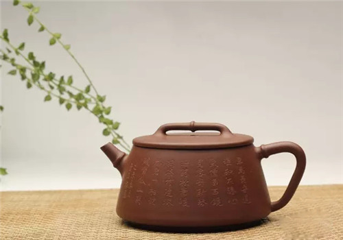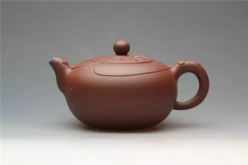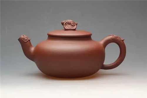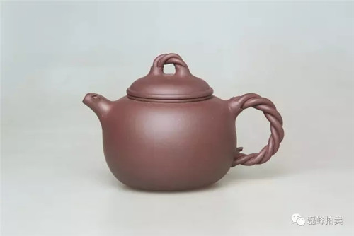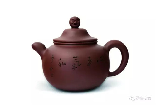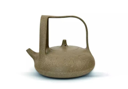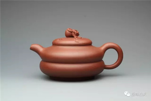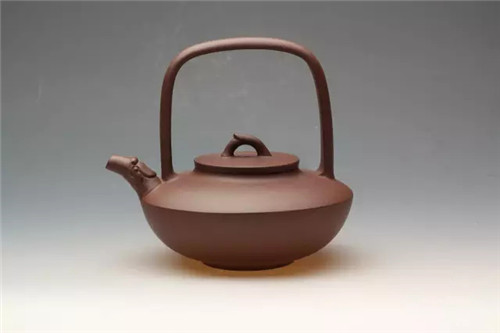 铫,古之温器,造型用之于紫砂壶始于玉成窑。作者深感古人之灵性,遂画图而作,此壶一看便知是文人壶的代表,其壶身之饱满如灌足茶水,充满张力,其把如行书,一波三折,似美女凹凸有致,壶身肥而却轻巧,读书时提壶品茗,岂非红袖添香呼?