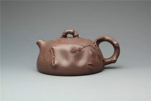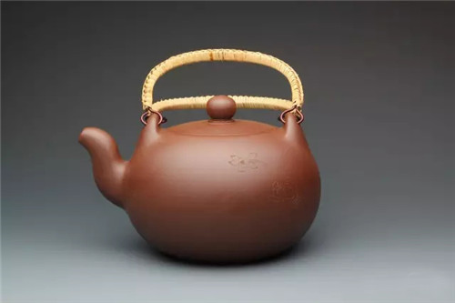 壶是由三个大、中、小的圆球重叠而垒成,故称掇球壶。其造型以优美弧线构成主体,线条流畅,视觉感也极为舒适,整把壶稳健丰润。