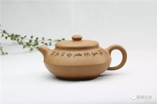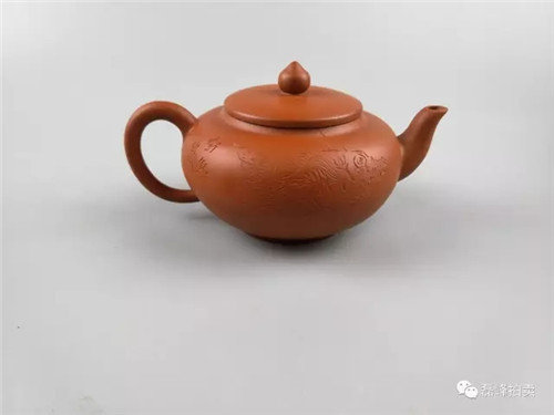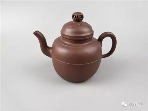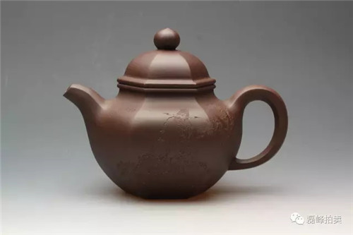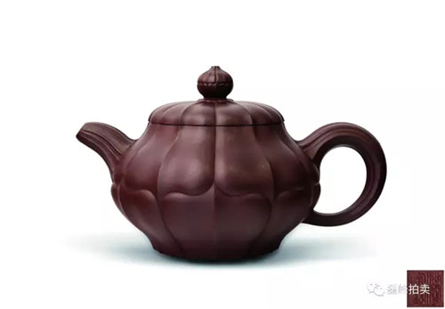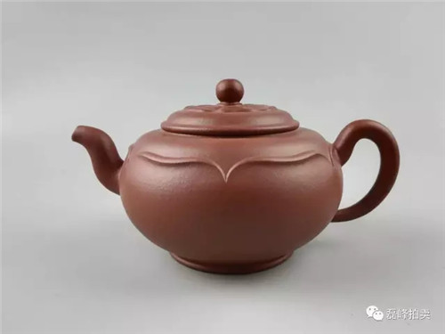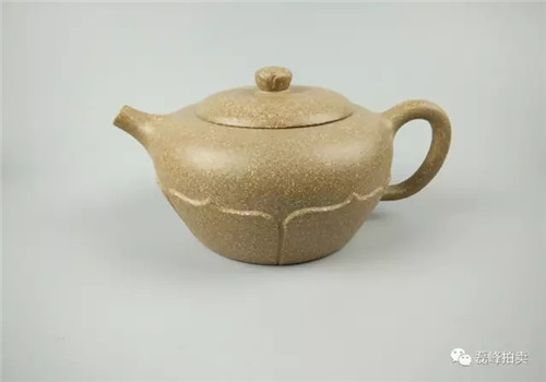此物以莲花为基形,壶身鼓腹饱满。壶盖以官帽上的菱花纹为装饰,丰富了整器的层次感,内蕴丰富,与壶体完美搭配,赏之和谐。
