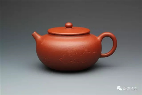 此壶为顾景舟嫡传弟子、中国工艺美术大师徐汉棠先生所制,壶身整器圆润饱满,壶把和壶嘴线条流畅,平口出唇,短流曲柄,平底内凹,姿态优美。