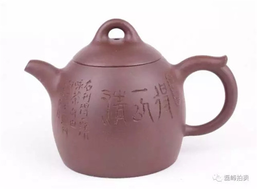 此壶为摹古之作,曼生壶式中经典的款之一。此壶呈现素净、简洁的美感,质朴大方,悠然恬静。结构合宜,稳重大方,实为慧心之作。