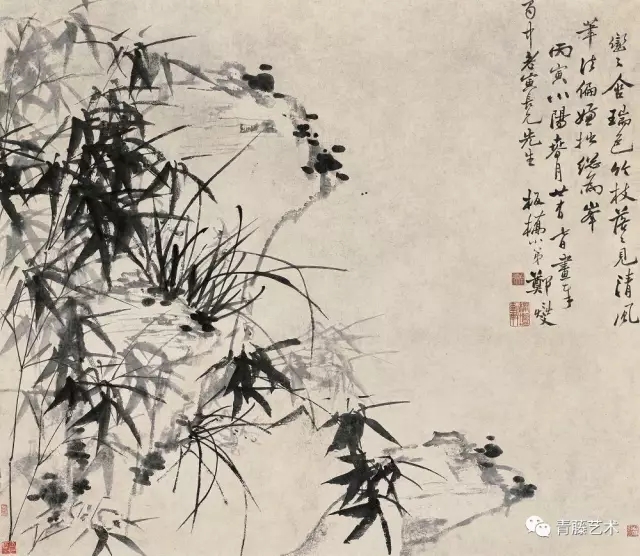 郑板桥 兰竹石图轴