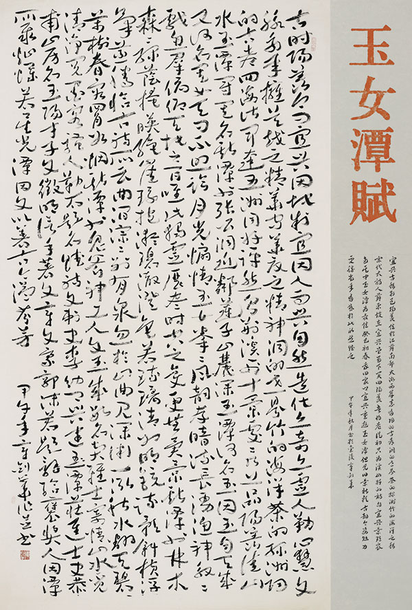 由江苏省文联主办,江苏省书协、江苏省现代美术馆承办的“大有文章——章剑华·新文人、新章草书法作品展”于10月28日上午,在江苏省现代美术馆展出。说到展览的主题“大有文章”,章剑华解释说:“大有”出自《易经》六十四卦之第十四卦:“离上乾下大有卦”,是上上卦,是大有所成的意思,“图吉祥之意,祝福大家,也祝福自己。”作为一场与众不同的个展,这次既没有开幕式,也没有研讨会,更多的像是一次艺术的交流。