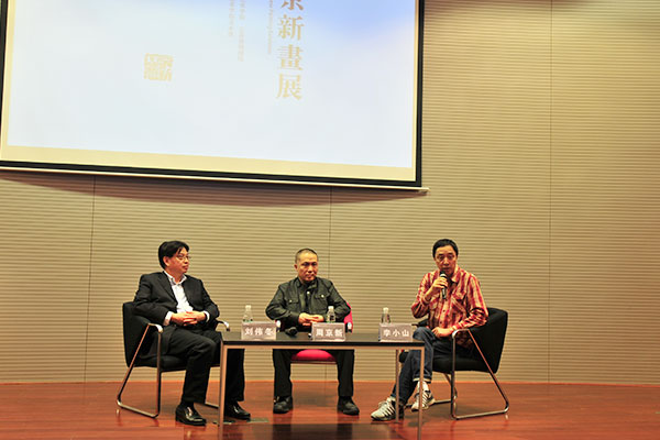 2014年10月22日下午,“周京新画展”在南京艺术学院美术馆隆重开幕。南艺美术馆报告厅内座无虚席,周京新画展的开幕媒体见面会在这里举行。艺术家周京新,南京艺术学院院长刘伟冬,南京艺术学院美术馆馆长、著名艺术批评家李小山三人围坐一起,畅谈艺术创作与感受,共叙往日情怀,并解答了观众和媒体的提问。