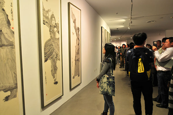 周京新介绍,此次展览共展出水墨写意作品60幅,新作占多数,主要分为三个系列:一是表现传统戏曲人物的“角色”系列;二是表现苏州园林的“风景写生”系列;三是表现飞禽、花卉和草虫的“苍鹭”系列。