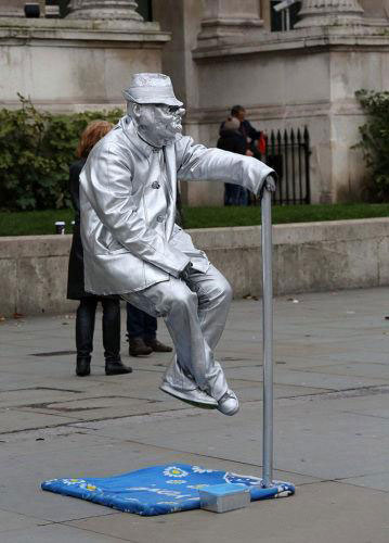 至于埃德米德斯能够单脚站立,他称这得益于他藏在外套内部的一个自治的金属装置。据悉,在英国像埃德米德斯这样在伦敦街头的艺人近千人,其他包括自由女神雕塑、亚瑟王等。