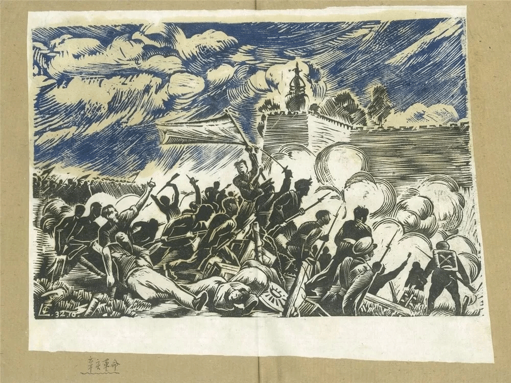李家桢 《辛亥革命》 1940年代 套色木刻 28x18cm