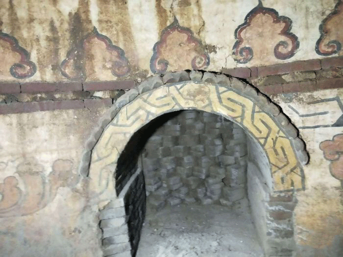 据济南市考古研究所考古科科长郭俊峰介绍,这处墓葬的地下古建筑为圆形结构,穹顶有莲花形浮雕,墙壁有似祥云的精美壁画,写有“大元国至元二十二年”字样,整体形状酷似蒙古包,朝南方向似有墓道门。