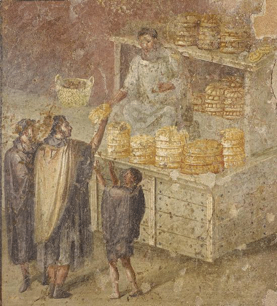 食物是罗马文化的重要组成部分,庞贝古城周围有大约80个农场和葡萄园。美食不光提供给壁画餐厅,也提供到酒吧和餐馆中,同时,美食还提供给神明。