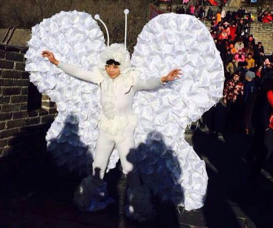 2015年1月1日上午11:30,跨界艺术家孔宁行为艺术《化蝶》在八达岭长城展出。