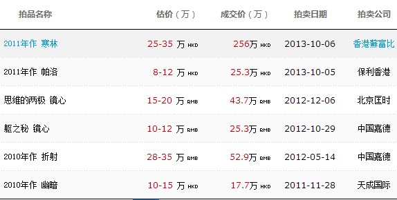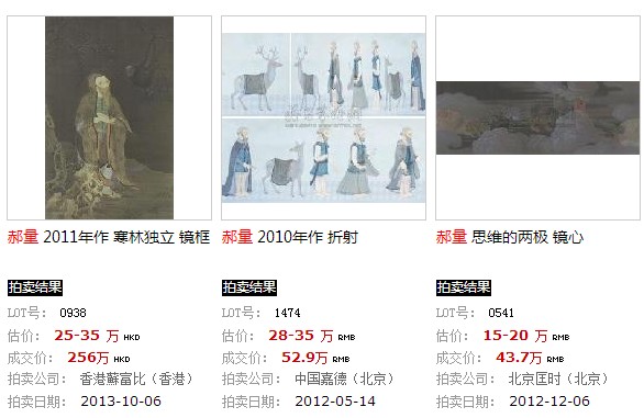 雅昌艺术网数据显示艺术家郝量拍卖作品价格前三