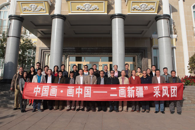 “树树皆秋色,山山唯落晖”。新疆之秋,短暂而美丽,也许正因为如此,秋天的新疆更让人怀念和期待。为了贯彻中央第四次全国对口援疆工作会议精神,文化部和中国文化传媒集团的领导十分重视,在这个美好的季节,组织了来自全国各地知名画家相聚新疆,在这里开展为期一周的“中国画•画中国——二画新疆”写生创作系列活动。该活动是由中国文化传媒集团、新疆维吾尔自治区文化厅共同主办的援疆工程,由中国文化传媒集团中国美术院、新疆维吾尔自治区文化馆联合承办,北京视界聚焦文化传媒有限公司执行实施,并得到了同曦集团、新疆维吾尔自治区美术家协会、新疆维吾尔自治区师范大学美术学院的全力支持。