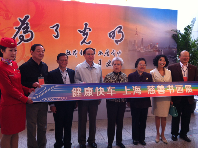 中共中央政治局原委员、国务院原副总理吴仪,中共中央国家机关工作委员会副书记俞贵麟,上海市政协原主席、市人大常委会原主任陈铁迪,上海市政协原主席、上海市慈善基金会理事长冯国勤,健康快车创会主席方黄吉雯及来自全国各地的嘉宾出席了28日画展的开幕式。此次慈善书画展是为健康快车火车医院筹募经费,健康快车将部分善款用于四川芦山地震灾区民众的白内障复明手术。