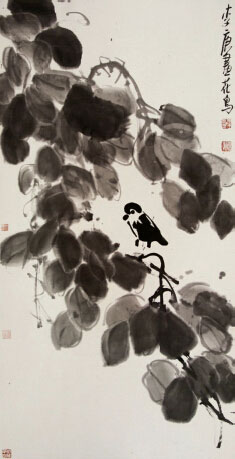 《花鸟》136×70cm-纸本水墨-李庚