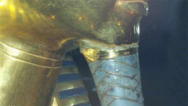 据外媒报道,著名的古埃及图坦卡门王(King Tutankhamun)面具由于拙劣的修复工作遭到毁坏,这件丧葬用的面具已超过3300年历史。10月份,博物馆工作人员在清洁面具时不慎将其摔坏,圆锥形的长胡子脱离了下巴,匆忙之中他们用粗糙的环氧基树脂粘合被摔落的胡子,干燥之后在颏下留下了一层清晰可见的粘合剂。