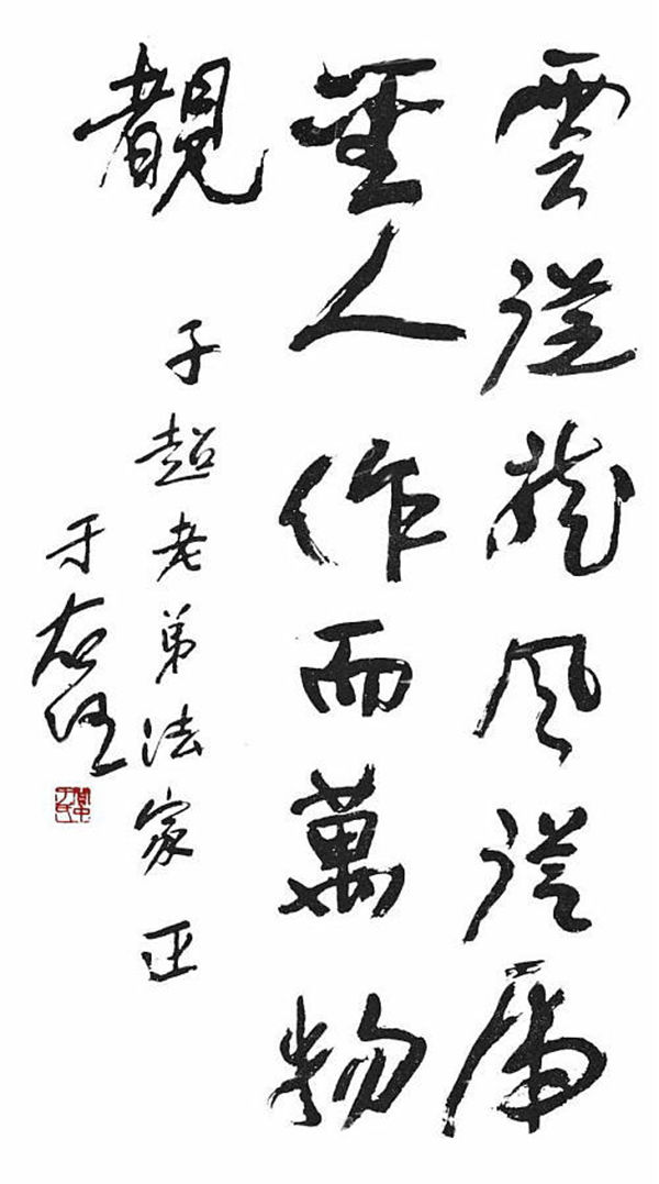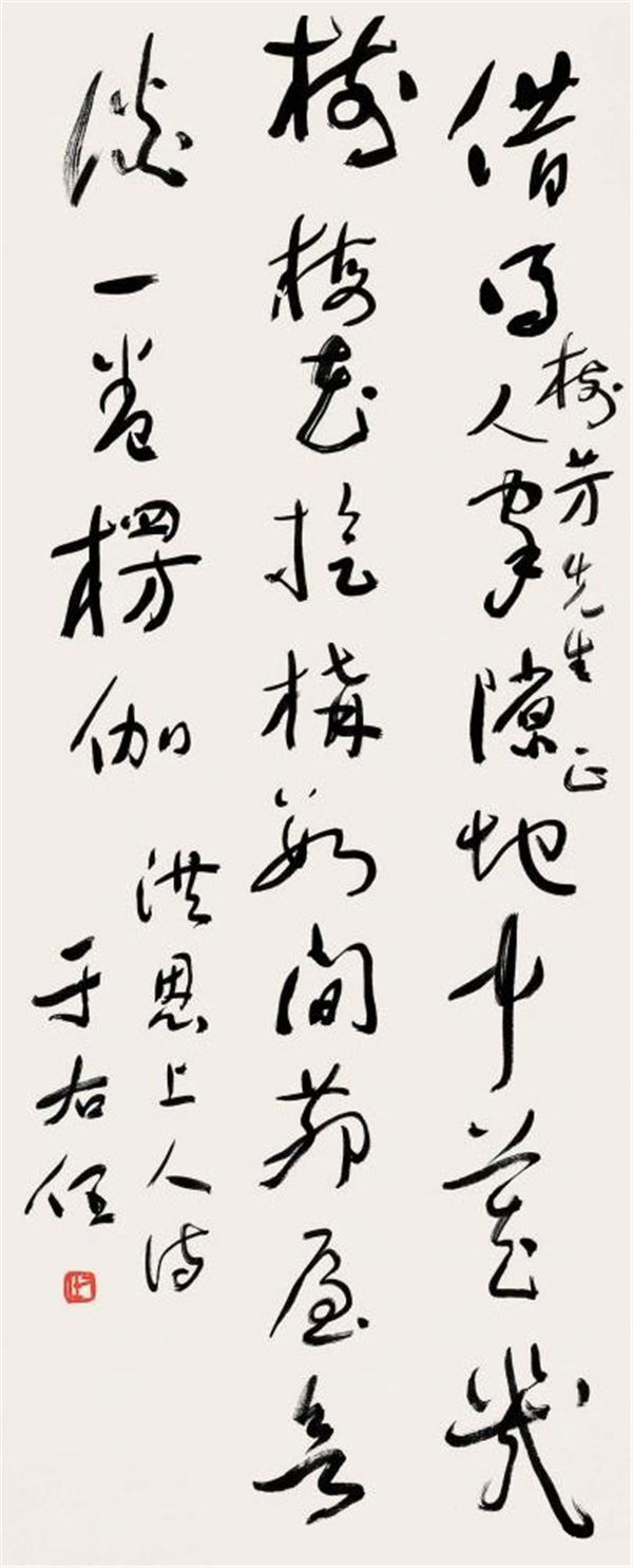 至于于右任自己的草书,笔画简单,形态优美。他基本上写的是不相连属的今草,但他的草书是由章草入今草的,在他的草书作品中,不时可以见到章草的笔法。在用笔方面,几乎笔笔中锋,精气内蓄,墨酣力足,给人以饱满浑厚的感觉。于右任书法作品欣赏。