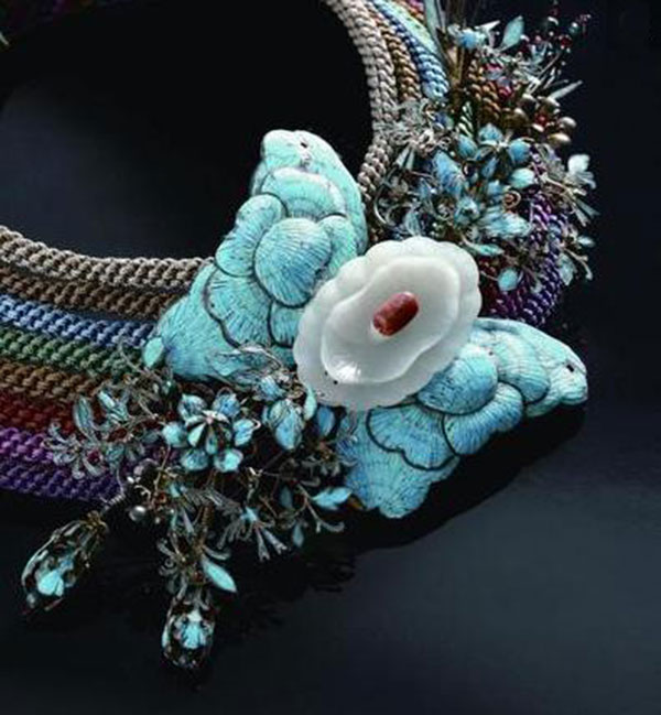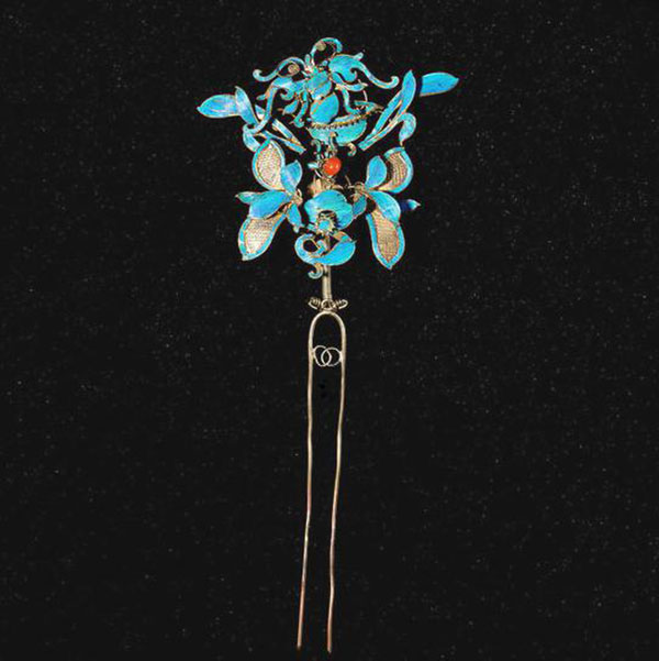 虽然没有宝石的炫亮华丽,但是点翠制成的饰物,自有一种艳丽拙朴之美,体现了东方饰品注重细节,讲求工艺的精细、含蓄