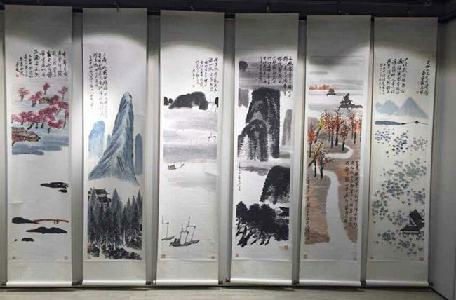 《山水十二条屏》是齐白石艺术水淮最高的作品之一。1964年齐白石曾经在欧洲举办展览时引起轰动,毕加索看后曾经感慨地说:“印象派的大师在东方。”