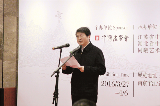 江苏省文化厅厅长徐耀新,中国画学会副会长程大利,湖北省文化厅副厅长段天玲,湖北省中国画学会会长施江城,同曦集团董事长、江苏省中国画学会名誉理事长陈广川先后发言,开幕式由中国画学会副会长、江苏省文化厅巡视员、江苏省中国画学会会长高云主持。