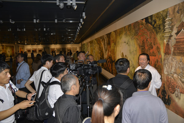 展览作者中国国家画院院长杨晓阳在展厅接受采访