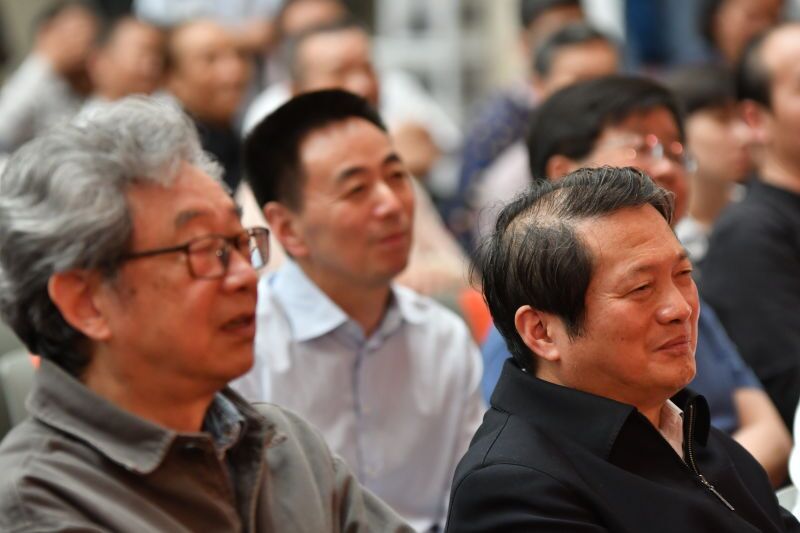 之后,中国国家画院院长、展览作者杨晓阳致答谢词,并向江苏省美术馆捐赠了作品《酒逢知己》,最后,江苏省政协原副主席南京艺术学院原院长冯健亲,江苏省文化厅党组书记、厅长徐耀新,江苏省委宣传部副部长徐宁,江苏省文联书记处书记、党组成员刘旭东,中国美术学院教授、著名画家刘国辉,南京艺术学院院长、江苏省美协副主席刘伟冬共同上台为本次展览揭幕。开幕式后举办了展览座谈会,由江苏省美术馆研究员、学术顾问、中国美术家协会理论委员会原副主任、中央文史研究馆书画院理论委员会副主任 马鸿增和中国美术学院教授、博士生导师任道斌共同主持。